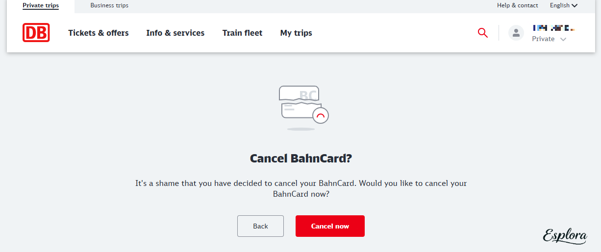 화면에 "BahnCard successfully cancelled"라는 메시지가 뜨면 완료입니다.