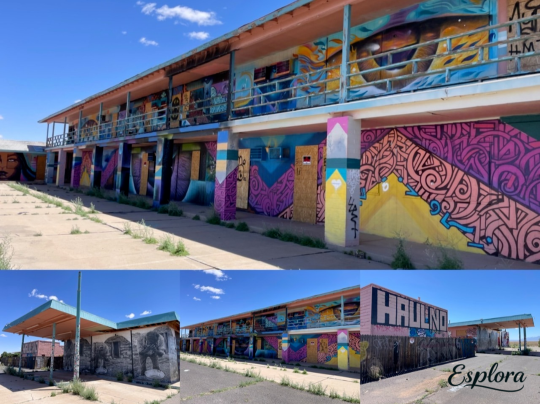 어쩌면 여러분은 그랜드 캐년 국립공원으로 향하기 위해 북쪽으로 미국 89번 고속도로를 따라 달리다 우연히 오른쪽 창밖으로 알록달록한 구조물을 발견할지도 모릅니다. 이 구조물이 바로 페인티드 데저트 프로젝트의 주요 캔버스입니다! 한때 낡은 모텔, 주유소, 무역소는 이제 멋진 벽화와 확대된 사진으로 장식된 활기찬 랜드마크로 자리 잡았습니다. 여러분이 이곳에 잠시 멈춰 섰다면, 다양한 예술작품으로 구성된 시각적인 축제를 만나게 될 것입니다.